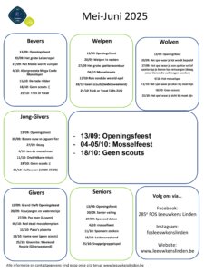 Iedereen heeft elke zaterdag scouts tussen 14u en 17u, met uitzondering van sommige activiteiten. Veel plezier!